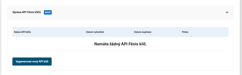 Abyste mohli začít využívat API Fénix, potřebujete vygenerovaný API klíč.