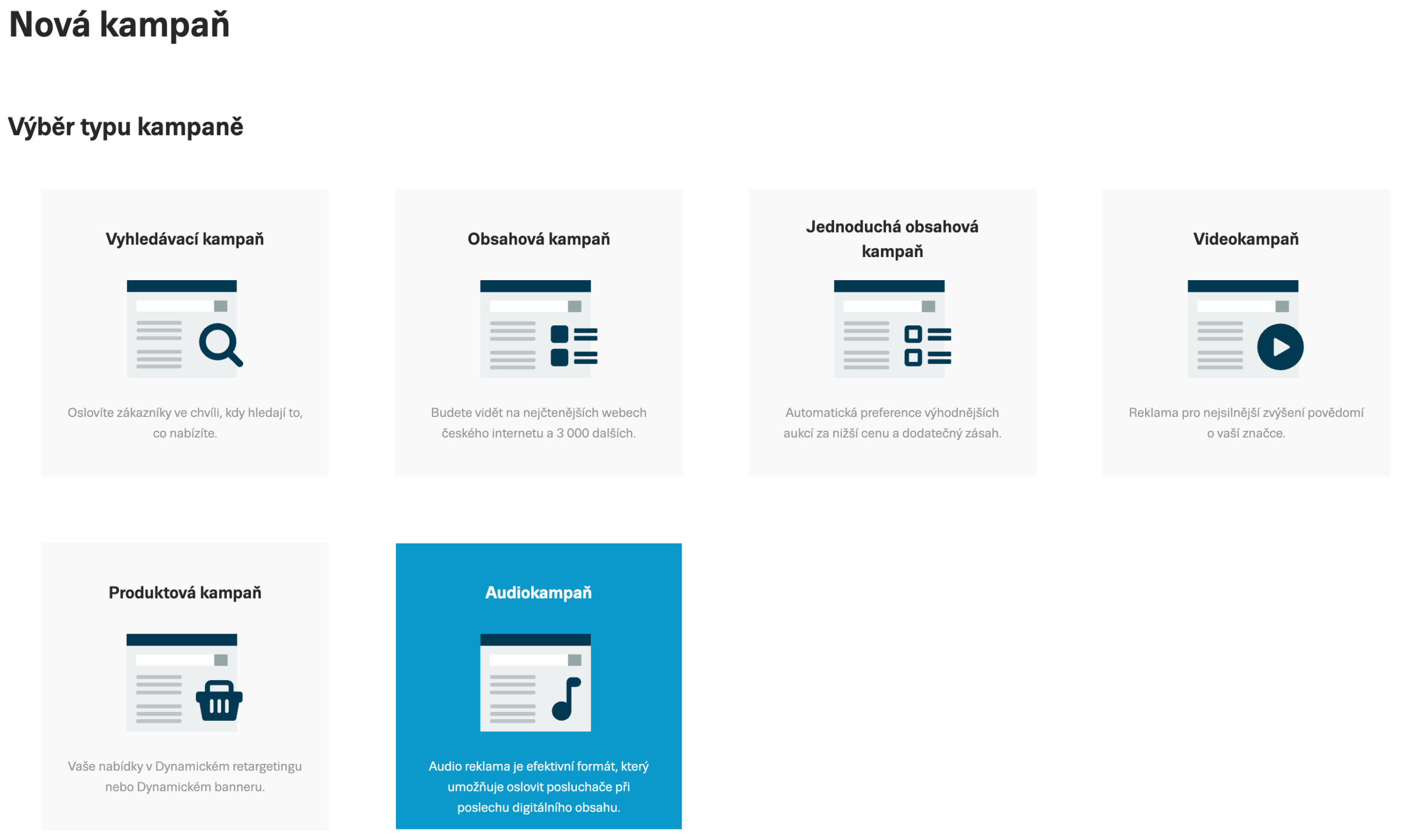 Audio v Skliku se zadává do typu kampaně Audiokampaň.